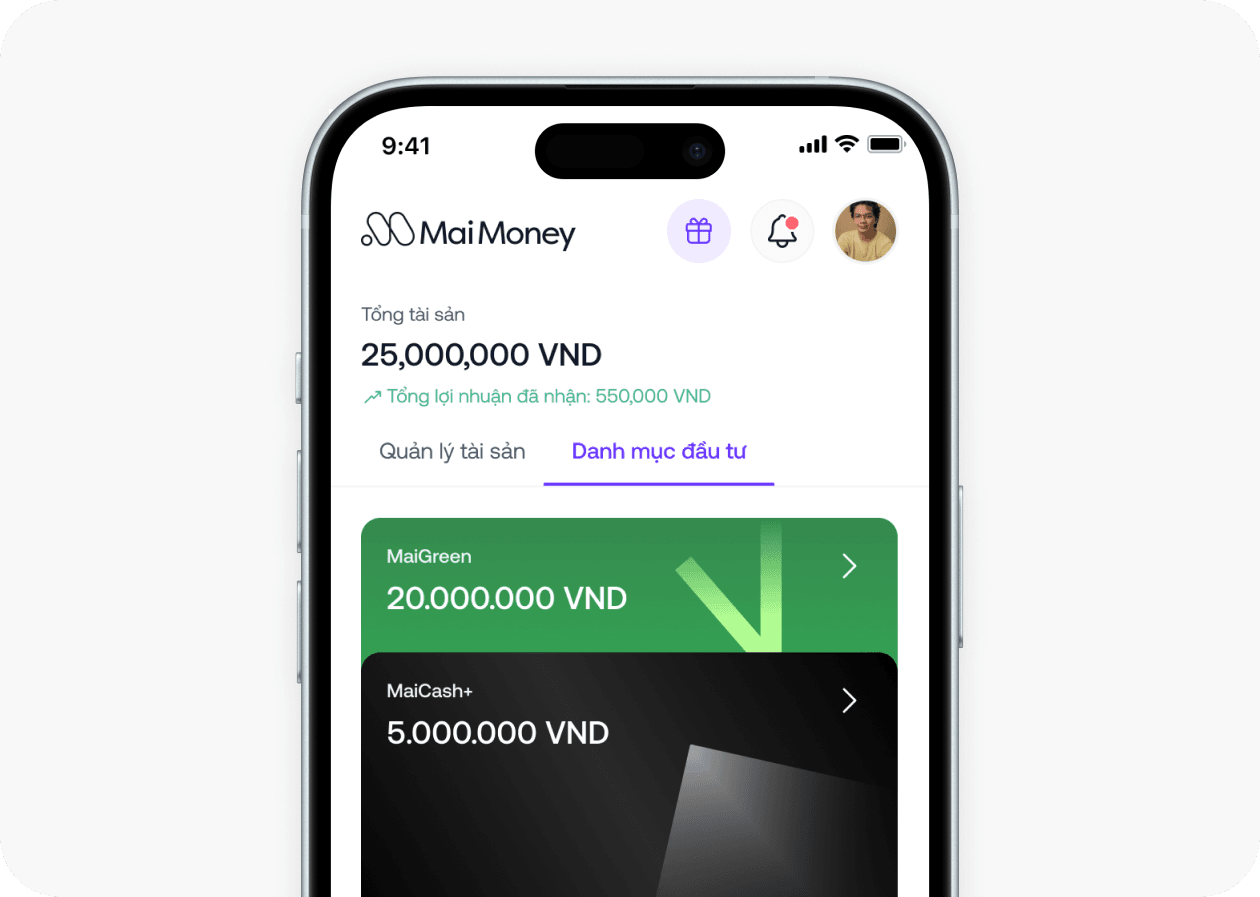Xây dựng danh mục đầu tư ngay hôm nay với MaiGreen và MaiCash+ và trở thành người đầu tiên trải nghiệm những sản phẩm mởi tiếp theo của chúng tôi.